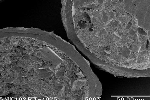 - • ODT exterior picture and cross-sectional SEM shows contained coated Ze-form microspheres